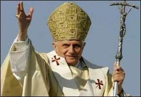 El Papa Benedicto XVI saluda durante la Santa Misa en el campo de Islinger en Ratisbona.