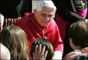El Papa Benedicto XVI sonríe a la multitud a su paso en dirección a la bendición del nuevo órgano de la Alte Kapelle en Ratisbona.