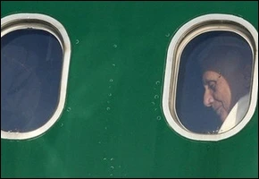 Vemos al Papa Benedicto XVI a través de una ventanilla del avión que lo llevó hacia Turquía en una viaje de 4 días. El Pontífice señaló que el objetivo de su visita a Turquía es promover el diálogo y crear puentes, minutos antes de partir en su primer viaje como Pontífice a un país de mayoría musulmana.