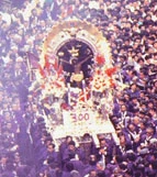 En realidad son dos imágenes las que salen en procesión cada mes de octubre: una, el lienzo con la copia del Crucificado del muro, y otra, la de la Virgen de la Nube, devoción ecuatoriana que la madre Antonia trajo al Perú.