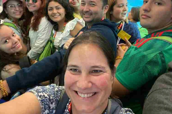 Uge Álvarez es de nacionalidad venezolana, tiene 43 años. Cuando fue a la JMJ de París, tenía 17 años y estaba acompañada de un grupo del Regnum Christi de Venezuela.