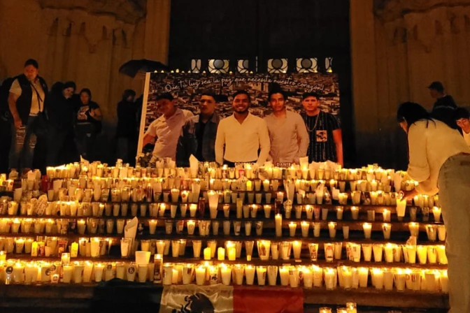 En atrio de la Iglesia se colocaron velas con las fotografías de los jóvenes y otras víctimas de la violencia en el país. “Cada una de estas luces manifiesta una intención, una familia, es una voz silenciosa que está diciendo: ‘no queremos que esto esté sucediendo’”, dijo el P. Hugo Oslvado Vargas Graciano, quien encabezó el momento religioso.