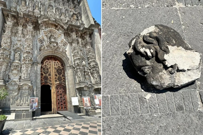 En su mensaje, las autoridades de la Catedral señalaron que “poco antes de las 2 de la tarde se registró un desprendimiento en la fachada del Sagrario Metropolitano, concretamente en la puerta de ingreso al recinto, afectando de manera severa la rampa de ingreso para personas en sillas de ruedas”.