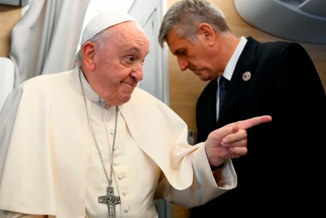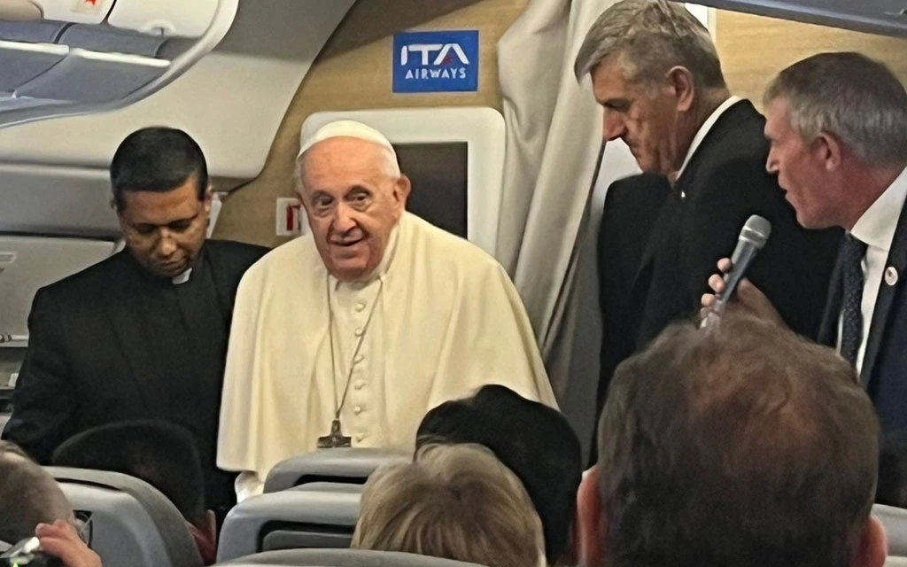 El Papa Francisco fue recibido por los periodistas que viajaron con él con varias preguntas sobre el Sínodo de la Sinodalidad, durante el vuelo de 10 horas desde Ulán Bator hasta Roma, este 4 de septiembre.
