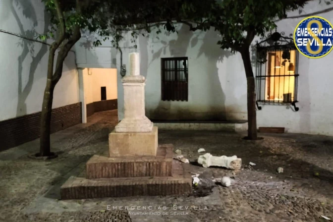 Una cruz de piedra esculpida en el siglo XVI que estaba colocada en una plaza pública junto a la Catedral de Sevilla (España) ha sido destrozada este fin de semana, en un acto de vandalismo que la Policía está investigando.
