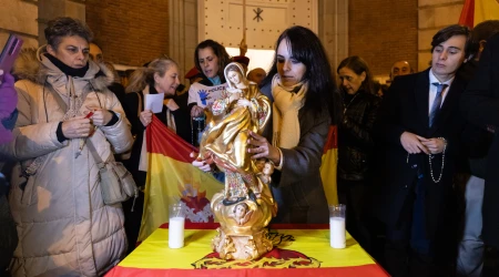 El pasado mes de noviembre, algunos fieles impulsaron el Rosario por España que se medita a las puertas del Santuario del Inmaculado Corazón de María en Madrid, cerca de la sede nacional del gobernante Partido Socialista Obrero Español (PSOE), donde se siguen protestas ciudadanas ininterrumpidas desde hace dos meses.