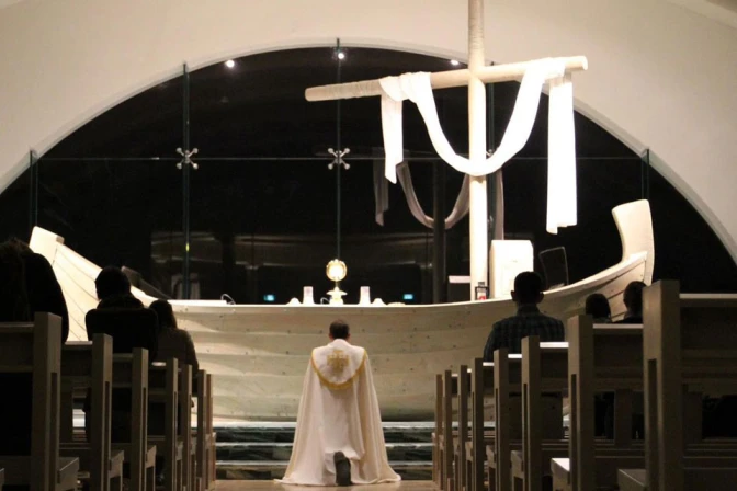 Una nota del Centro Magdala enviada a ACI Prensa señala que desde las 14:00 horas del Jueves Santo hasta la 1:00 del Viernes Santo se hará la Adoración Eucarística. Al concluir se rezará Laudes, la oración matutina y cotidiana que rezan los sacerdotes y las religiosas en la Iglesia Católica.