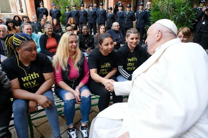 Tras saludar con afecto a las mujeres de la prisión, el Papa Francisco se trasladó hasta el patio interior, donde dirigió un discurso a las mujeres, a los voluntarios y agentes de la policía penitenciaria.