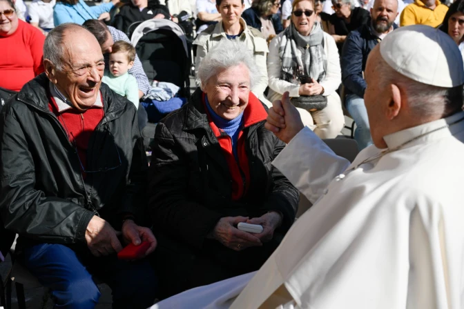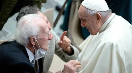 El relato bíblico nos presenta en este momento dos opiniones diferentes frente a la invitación de Rut y, por tanto, frente a la vejez. Una de las dos nueras, Orpá, que le tiene cariño a Noemí, con un gesto afectuoso la besa, pero acepta lo que ella también cree que es la única solución posible y sigue su propio camino. Rut, en cambio, no se separa de Noemí y le dirige palabras sorprendentes: “No insistas en que te abandone” (Rut 1,16). No tiene miedo de desafiar las costumbres y la opinión común, siente que esa mujer anciana la necesita y, con valentía, permanece a su lado, dando inicio a una nueva travesía para ambas. A todos nosotros —acostumbrados a la idea de que la soledad es un destino inevitable— Rut nos enseña que a la súplica “¡no me abandones!” es posible responder “¡no te abandonaré!”. No duda en trastocar lo que parece una realidad inmutable, ¡vivir solos no puede ser la única alternativa! No es casualidad que Rut —la que se quedó acompañando a la anciana Noemí— sea un antepasado del Mesías (cf. Mt 1,5), de Jesús, el Emanuel, Aquel que es “Dios con nosotros”, Aquel que lleva la cercanía y la proximidad de Dios a todos los hombres, de todas las condiciones y de todas las edades.