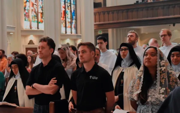 Dirigida por el Arzobispo de Denver, Mons. Samuel Aquila, la procesión comenzó con una Misa en la Catedral Basílica de la Inmaculada Concepción, entre la avenida Colfax y la calle Logan, donde los asistentes se alineaban en las paredes, abarrotaban los pasillos y llenaban incluso la zona del baptisterio alrededor de la pila bautismal. Las voces resonaban en toda la catedral mientras los participantes participaban en la Misa al unísono.