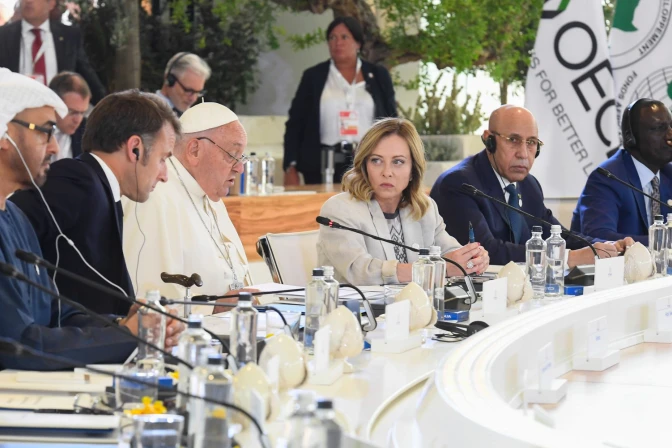 El Papa Francisco se trasladó este 14 de junio hasta la región de Puglia, en el sur de Italia, para participar en la cumbre del G7, un evento anual que reúne a líderes de las 7 economías más avanzadas del mundo: Canadá, Francia, Alemania, Italia, Japón, Reino Unido y Estados Unidos.