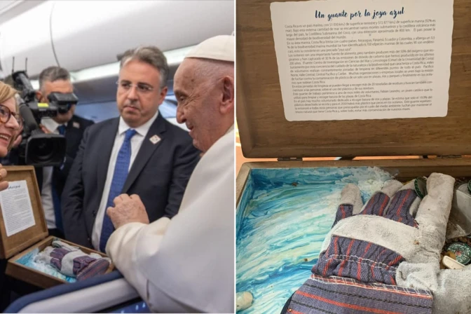 Durante su viaje hacia Indonesia, país en el que comenzará una extensa gira por Asia y Oceanía, el Papa Francisco recibió este 2 de septiembre un obsequio singular: un guante utilizado por un joven voluntario católico costarricense para limpiar y recoger basura en las playas de Costa Rica.