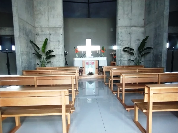 “Dios quiso que aquí haya una capilla”, señaló, y afirmó: “Este es el cenáculo, María con nosotros, que nos protege, nos cobija y nos regala su ternura”.