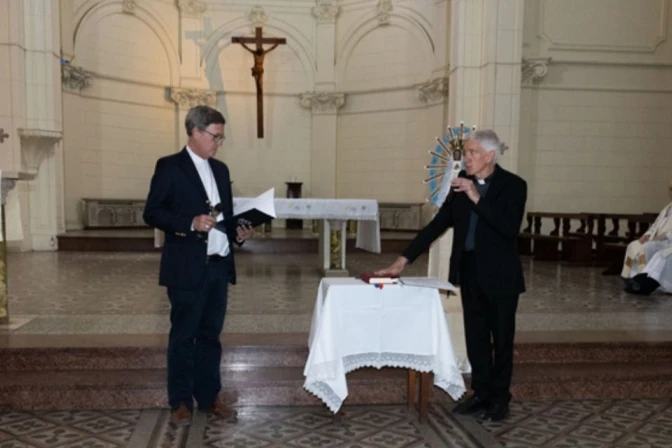 El Arzobispo de Buenos Aires y Gran Canciller de la Universidad, Mons. Jorge García Cuerva, tomó juramento al nuevo decano, quien expresó: “Prometo mantenerme siempre en comunión con la Iglesia Católica tanto en lo que exprese de palabra, como en mi manera de obrar”.