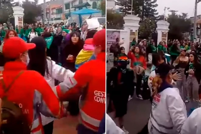 La denuncia ha sido respaldada con un video publicado en la cuenta de Facebook de 40 Días por la Vida Colombia, en el que se ve a las abortistas hostigando a los provida, quienes tuvieron que replegarse hacia la pared.
