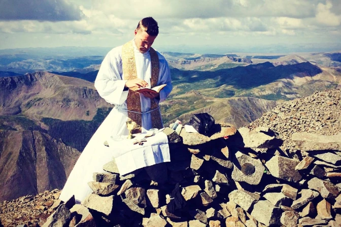 La primera Misa que celebró sobre un 14er fue una semana después de su ordenación, en mayo de 2011. Ahora, después de 13 años, puede decir que ha celebrado la Misa en todos los 14ers del estado.