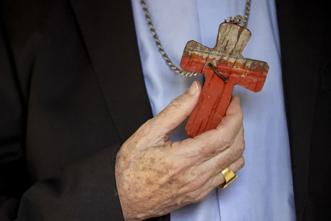 El Cardenal Michael Czerny, prefecto del Dicasterio para el Desarrollo Humano Integral en el Vaticano, explicó lo que significa su simbólica cruz pectoral de colores rojo y blanco.