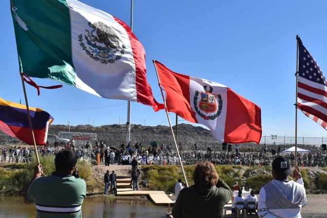 La Misa se realizó cerca del sitio conocido como Casita de Adobe, en la línea divisoria entre Chihuahua, Texas y Nuevo México, en una plataforma colocada sobre el río. Sobre el lado mexicano de la frontera, cientos de migrantes con banderas de diversos países participaron en una procesión con una cruz y una imagen de la Virgen de Guadalupe.