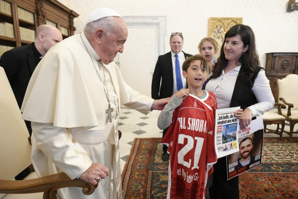 Es el ejemplo, según indicó Vatican News, de un niño que entregó al Pontífice una camiseta de fútbol con el nombre de Tal Shoham, un familiar secuestrado junto a su esposa, hijos, suegra y otros parientes, de los cuales algunos que fueron liberados tras el acuerdo temporal entre Hamas e Israel.