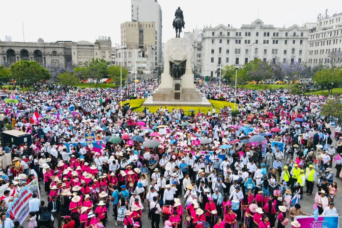 El sábado 7 de diciembre, cerca de 50.000 personas marcharon con banderas y globos de colores celeste y rosado en el centro de Lima, en Perú, en rechazo del avance de un proyecto de ley de “unión civil” entre parejas del mismo sexo.