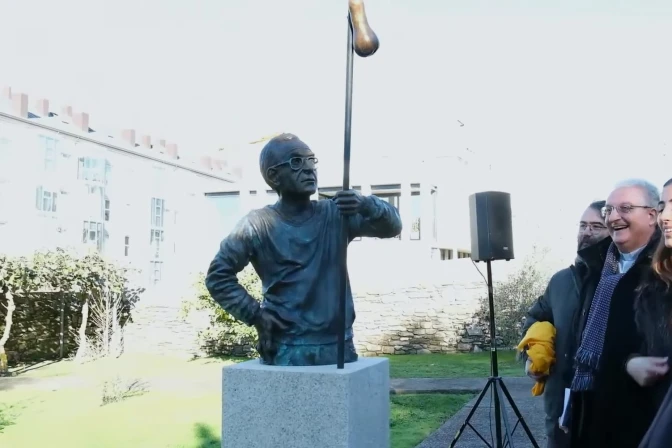 Tras el acto de homenaje realizado en la Oficina de Acogida al Peregrino, se descubrió una escultura del sacerdote elaborada por el artista Óscar Aldonza, que trató el encargo adjudicando a la figura del sacerdote la característica de “profeta” del Camino de Santiago.