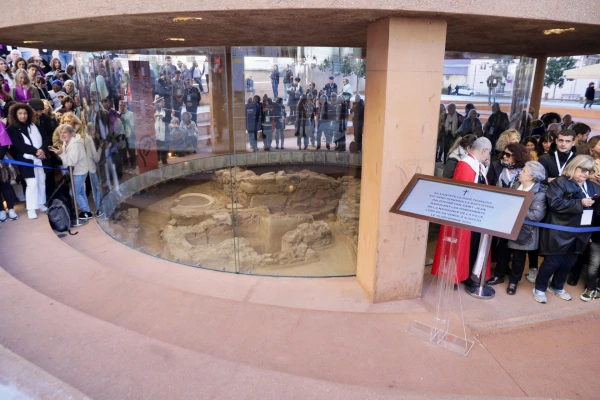 En su traslado al Palacio de Congresos y Exposiciones de Ajaccio, el Santo Padre se detuvo en el Baptisterio de Saint-Jean, que data del siglo VI y fue hallado en 2005 durante las excavaciones para construir un aparcamiento.