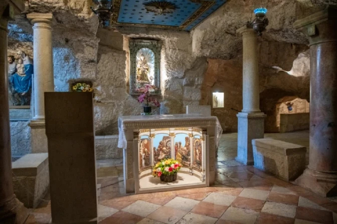 “Vivía en Roma y tenía una imagen de una escultura que representaba la huida a Egipto, con una oración detrás”, contó a CNA —agencia en inglés de EWTN News—. “La usaba cuando la gente me pedía que rezara para el don de los hijos. Cuando vine a Tierra Santa para un [mes de] descanso, una monja me dirigió a la Gruta de la Leche. ¡Qué sorpresa cuando vi allí esa misma escultura!”.