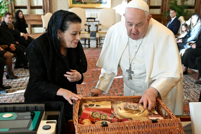 En la reunión, que se extendió durante 30 minutos, la jefa de Estado maltesa también donó al Santo Padre una cesta de productos típicos de su país.