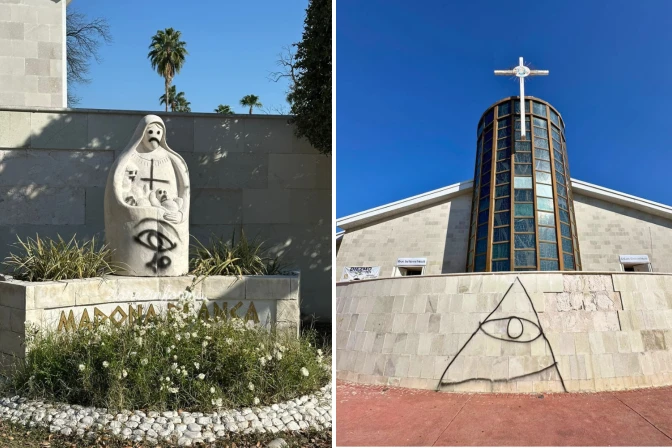 La Catedral del Espíritu Santo de Nuevo Laredo, en el estado mexicano de Tamaulipas, fue vandalizada durante el fin de semana con pintadas en su fachada y en una imagen de la Madonna Bianca (Virgen Blanca).
