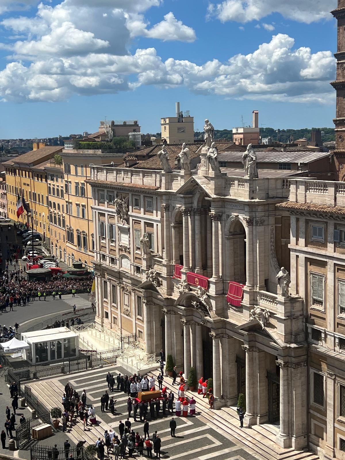 Muchos fieles quisieron recibirle a los pies de este templo mariano situado en el Esquilino, una de las siete colinas de Roma. Tanto en la zona frontal como en la parte posterior de la basílica, había grandes pantallas para seguir el funeral.