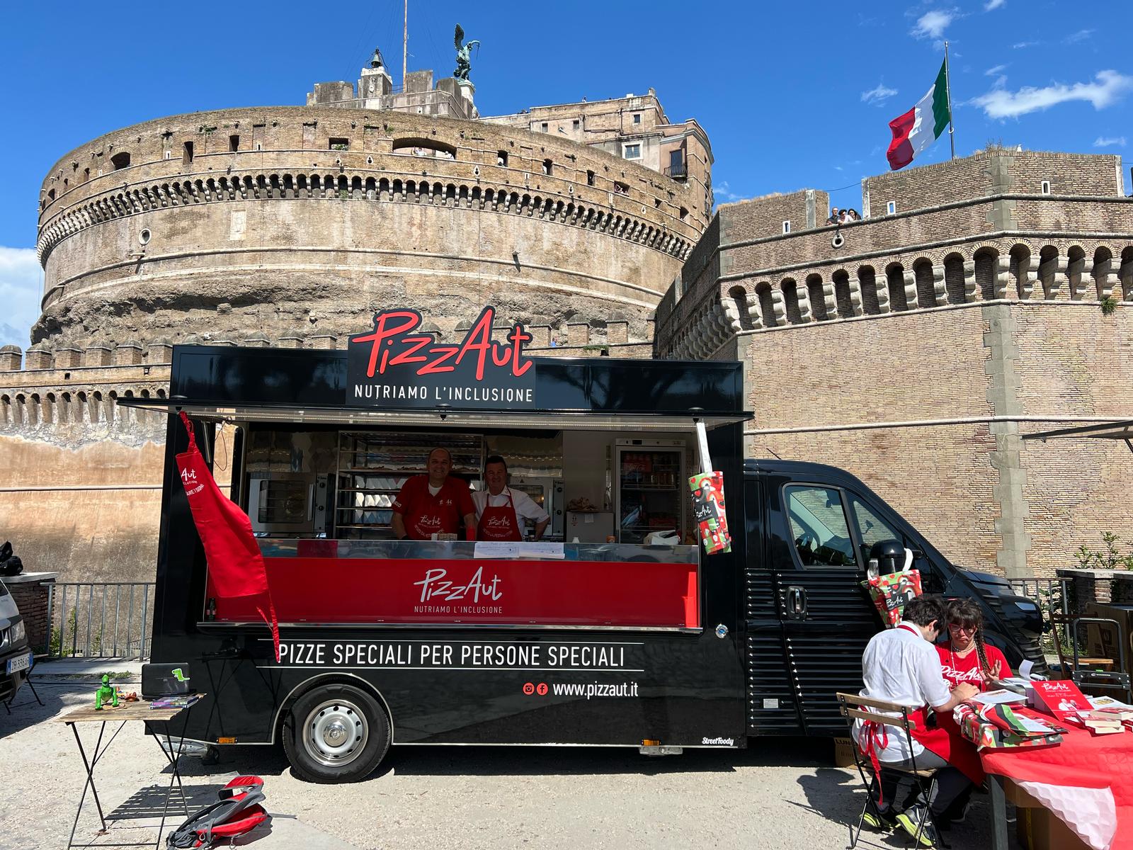 La Vía della Conciliazione, la ancha avenida que desemboca en la Plaza de San Pedro, se inundó desde primera hora el lunes 28 de abril de pequeños stands, altavoces de numerosos proyectos y asociaciones que trabajan por la inclusión de las personas con discapacidad.