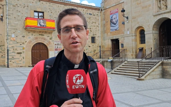 El P. Joseph Kirkconnell es sacerdote de la Archidiócesis de Detroit, en Michigan, (EE.UU.). Se encuentra en Alba de Tormes como peregrino hacia Santiago de Compostela, junto a seis seminaristas y otro presbítero del Seminario Mayor del Sagrado Corazón.