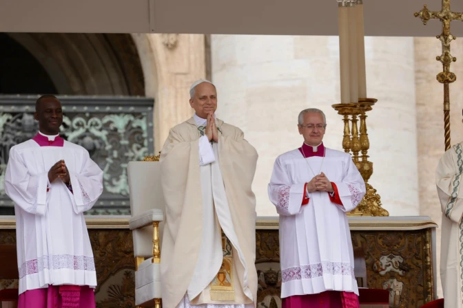 Después, León XIV se dirigió en procesión al altar de la celebración en la Plaza de San Pedro mientras se cantaban las Laudes Regiae, el antiguo himno litúrgico de aclamación al nuevo Pontífice.