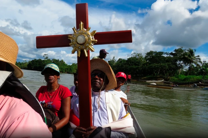 La llaman la Cruz Peregrina y desde el 29 de abril recorre por carretera y ríos la Diócesis colombiana de Tumaco, reavivando el fervor eucarístico en las parroquias gracias a que en su centro porta el Santísimo Sacramento.