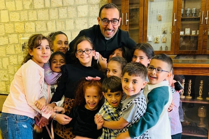 El P. Bashar Fawadleh, párroco latino en Taybeh desde 2021, relató a ACI Prensa la situación actual. Aunque no habla español, lo une un vínculo especial con Latinoamérica: su madre nació en Valencia, Venezuela, pero regresó a Cisjordania a los 16 años.