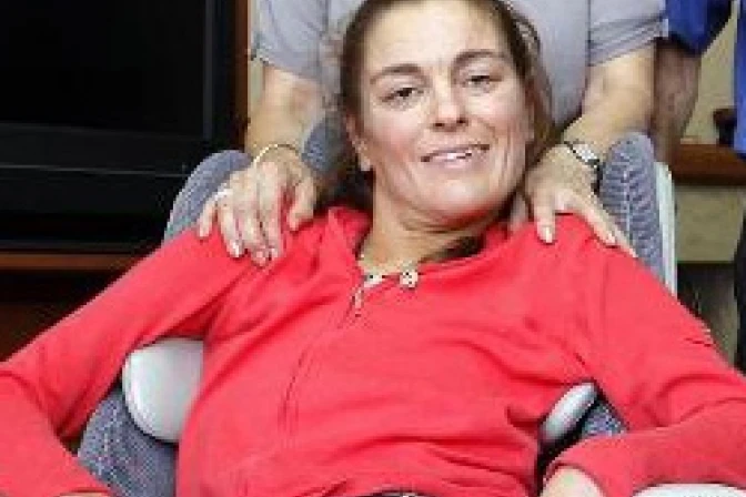Para ella, lo más duro de su enfermedad es la creciente dificultad que tiene para conversar con los demás y encuentra "alivio" a sus dolores intensos "mirando el crucifijo".