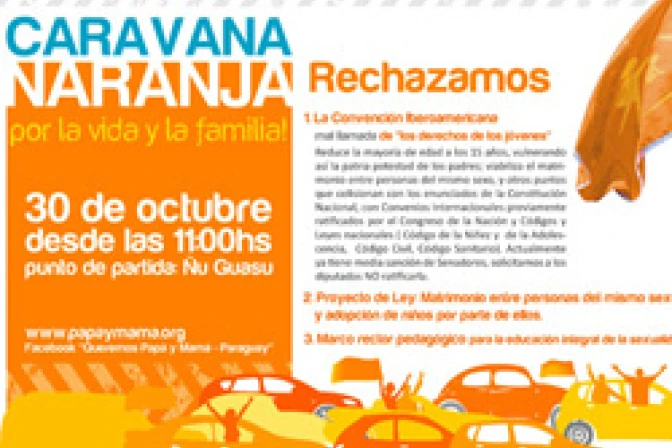 La Federación de Asociaciones por la Vida y la Familia (FEDAVIFA) de Paraguay anunció que el próximo 30 de octubre se realizará una "gran Caravana Naranja" en las calles en protesta por la aprobación de una convención iberoamericana que estaría en contra de la vida y la familia.