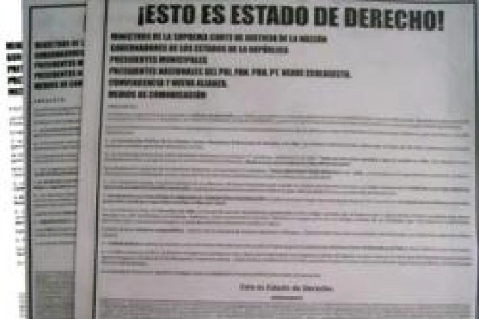 "En un Estado de Derecho la vigencia y el apego a la ley es obligación y responsabilidad para todos, sin excepción", afirmaron en un comunicado publicado el 3 de octubre en los diarios Excélsior, Milenio y La Jornada.