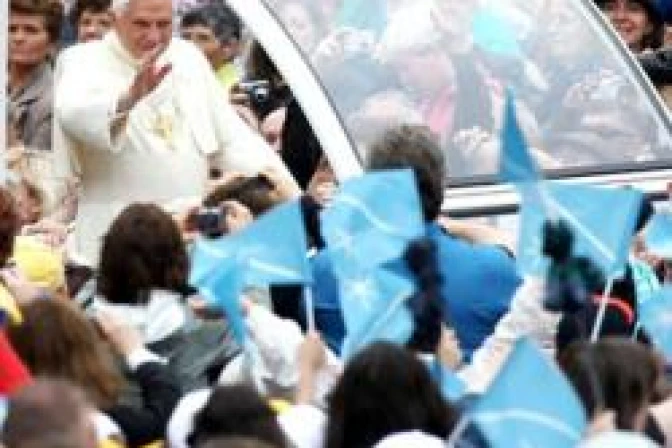 El Papa Benedicto XVI recordó a los jóvenes que "nunca estáis solos. La Iglesia confía en vosotros, os sigue, os anima y desea ofreceros lo que tiene de más valor: la posibilidad de levantar los ojos hacia Dios, de encontrar a Jesucristo, Aquel que es la justicia y la paz.