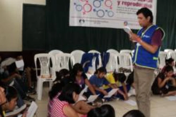 La capacitación que dirige Juárez sobre salud sexual y reproductiva apunta a convencer a jóvenes para que recolecten firmas, buscando la liberalización de las relaciones sexuales con adolescentes en Perú.