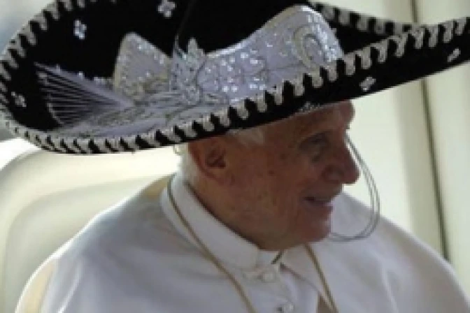 Mientras se escuchaban barras como “Benedicto, te amamos, por eso no nos vamos”, o “Benedicto, amigo, asómate un ratito”; el Papa se puso un sombrero de charro mexicano que arrancó vivas entre los miles de fieles.