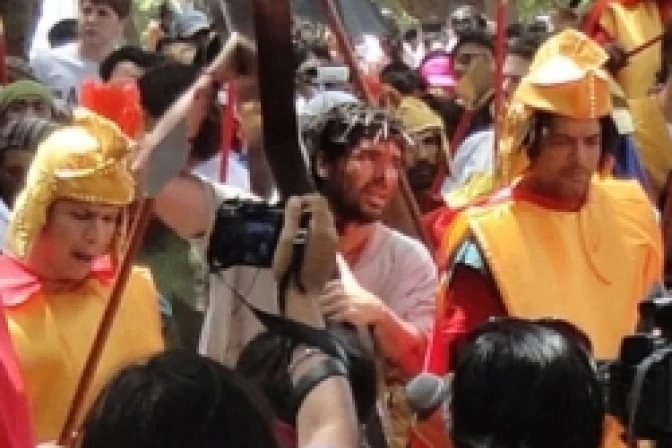 El actor y productor mexicano convertido a la causa pro-vida hace unos años, Eduardo Verástegui, interpretó a Jesús en el Via Crucis de Viernes Santo en el departamento de Piura, el norte del Perú.