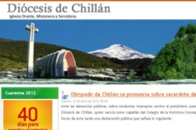 El Obispo de Chillán, Mons. Carlos Pellegrin, sancionó con la prohibición de ejercer su ministerio sacerdotal al Padre Juan Alberto Arroyo Sanhueza, acusado de ver pornografía en el colegio donde servía como capellán.