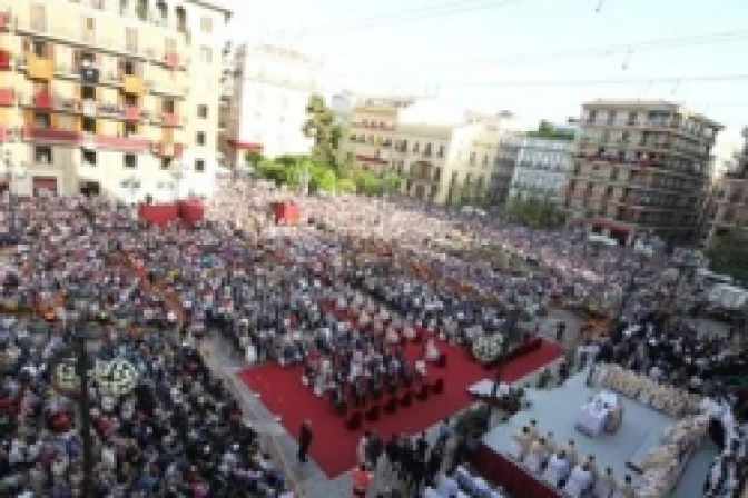 El Cardenal Cañizares ha presidido la solemne Misa invitado por el arzobispo de Valencia, Monseñor Carlos Osoro, en la Plaza de la Virgen, llena de miles de personas.