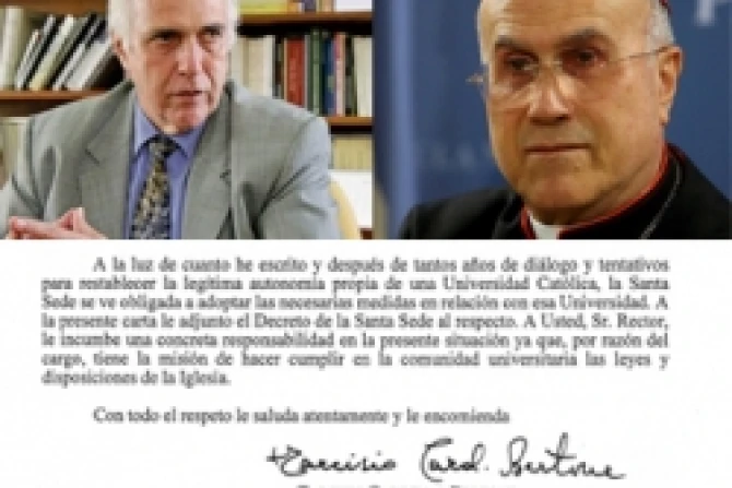 Aquí puede leer el texto completo de la carta del Cardenal Bertone al rector Marcial Rubio: