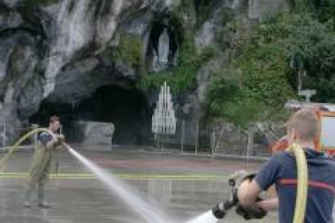 La nota precisa que los lugares en donde los peregrinos colocan los cirios y las piscinas en donde se sumerge a los enfermos para implorar a la Virgen su curación, "están por el momento inaccesibles".