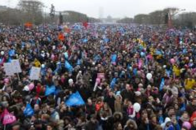 Más de 1 millón de personas se unieron en París (Francia) en la denominada "Marcha para Todos" en defensa del auténtico matrimonio y en contra del proyecto de ley promovido por el presidente Francois Hollande para legalizar las uniones homosexuales y la adopción de niños por parte de estas parejas.