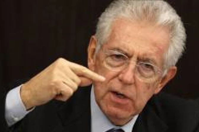 El Primer Ministro de Italia, Mario Monti, dijo el 16 de enero que se opone a que personas del mismo sexo puedan casarse o adoptar niños, una declaración que ha llegado a menos de un mes de las elecciones parlamentarias.