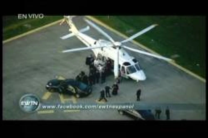 El Papa Benedito XVI llegó a Castel Gandolfo y ya se dirige a la residencia pontificia en donde unas diez mil personas se han dado cita desde muy temprano para esperarlo entre cánticos y oraciones.