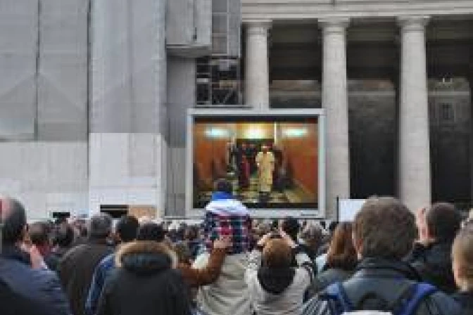 El Vaticano colocó pantallas gigantes en la plaza con el objetivo de que los fieles acompañaran cada segundo de los últimos momentos del Pontificado del Santo Padre.